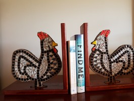 After seeing some of Janet’s work I commissioned her to make some book end for me. As I have a country kitchen I wanted chickens in the design. Absolutely love them, not only are they unique but simply stunning and gorgeous and exactly what I wanted they fit perfectly in with the décor. I highly recommend Janet for any mosaic project. Candice Heinrich-Grunder. |