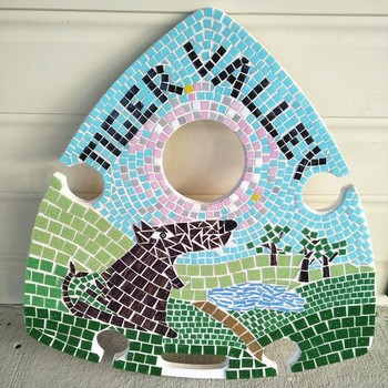 Tiger for Mandy Blount from Tiger Valley Gallery and Giftwear Brad and I would like to thank Janet Gray for mosaicing one of our Festival Tables for us. You can see it hanging in the gallery soon...and we can help you with customising your very own. Like us....you won't be disappointed as she has done a fantastic job! |